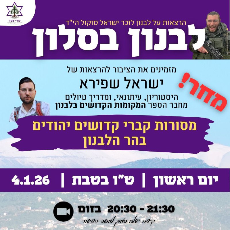 מחר במערכת בזום עם ישראל שפירא על קברי קדושים בלבנון